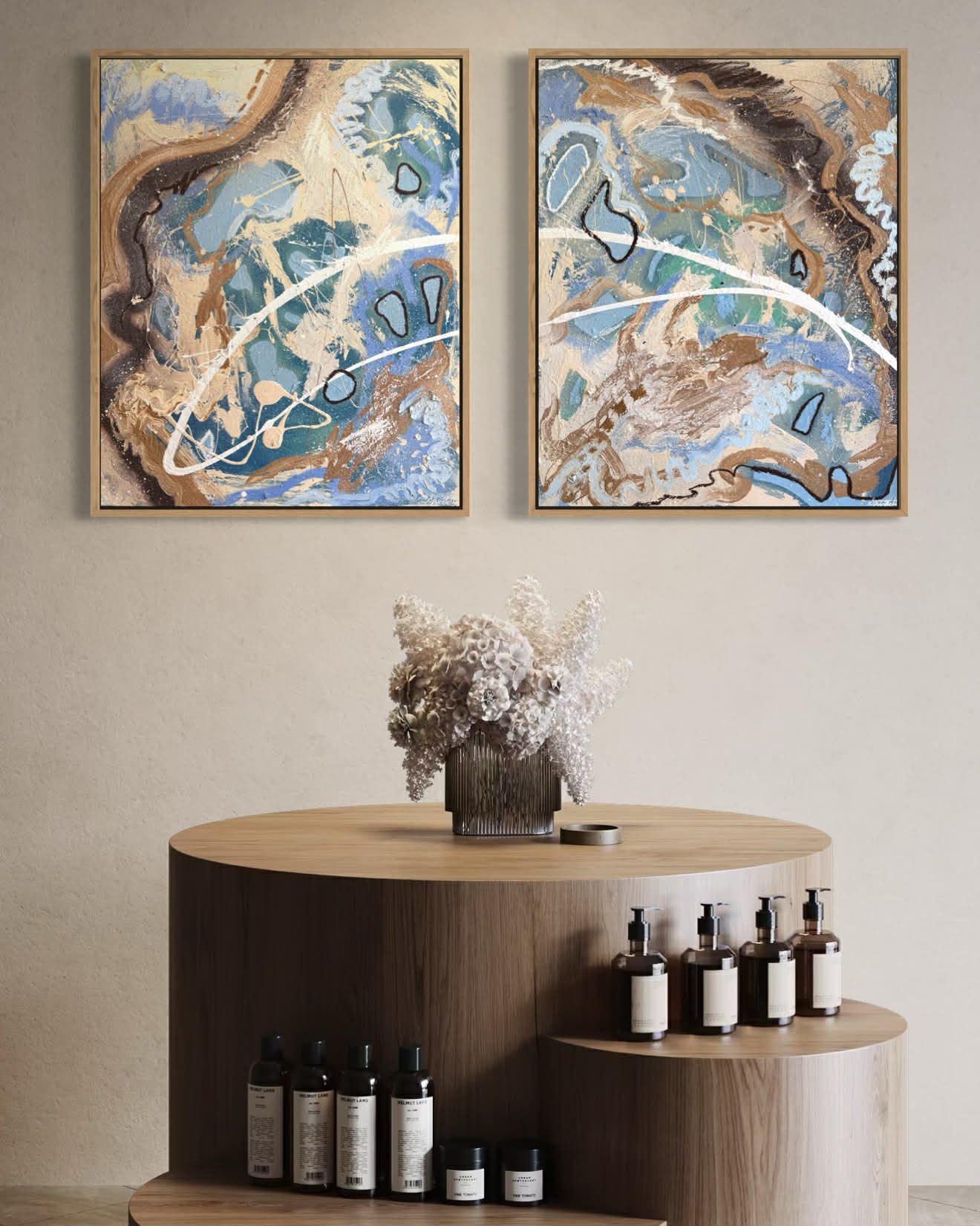 A beautiful pair to brighten your space. 610x760 mixed media (unframed).